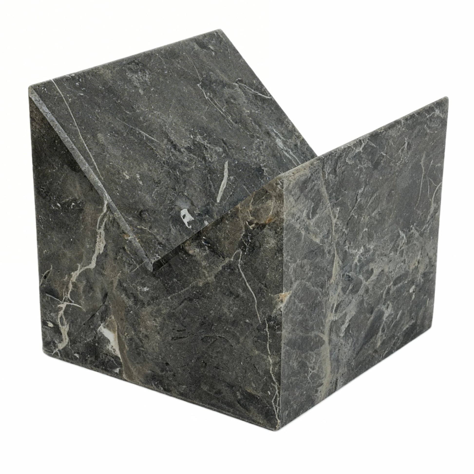 - Mermer Tipi: Karakteristik beyaz damarlara sahip, masif antrasit/füme doğal mermer.