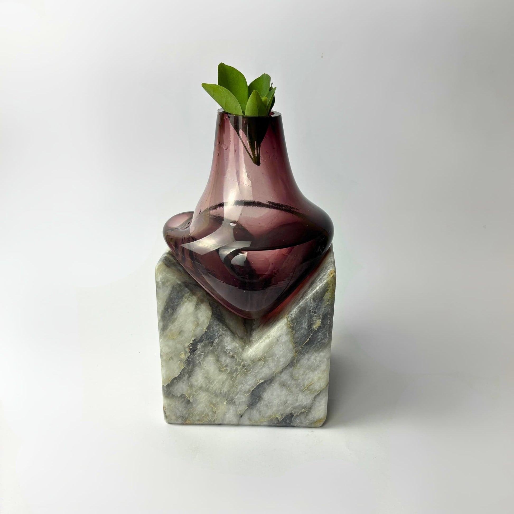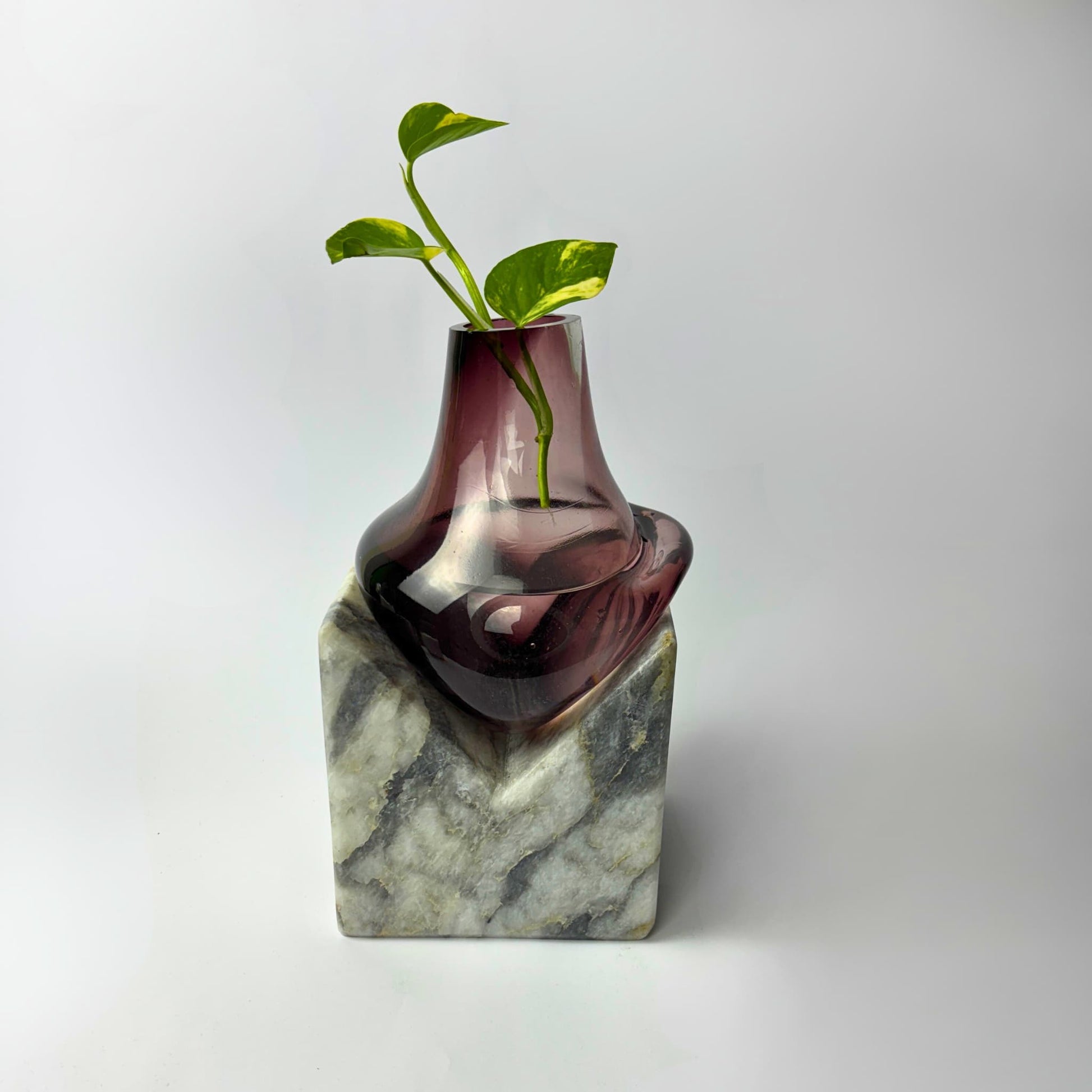 Amara, adını Latince “sonsuz” anlamına gelen kelimeden alır. Bu zamansız tasarım, el üflemeli bordo camın sıcak tonlarını doğal mermerin güçlü dokusuyla birleştirir. Her biri ustalıkla el işçiliğiyle üretilen Amara Cam Vazo, modern dekorasyonlarda hem sanat objesi hem de şık bir tamamlayıcı olarak öne çıkar.