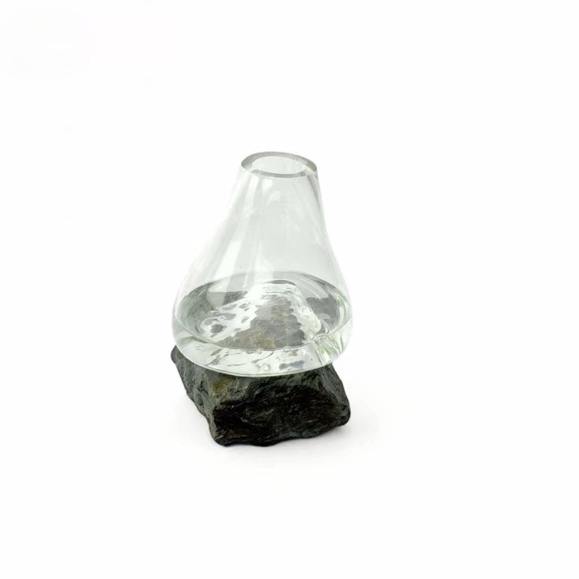 Akışkan Form, Köklü Duruş Bu tasarımda cam, sadece bir materyal değil, taşın üzerinde hareket eden bir "su" gibidir. Usta cam sanatçılarımız, erimiş sıcak camı doğal taşın üzerine doğrudan üfleyerek üretir. Cam, taşın en ince girintilerine ve katmanlarına nüfuz ederek donar ve o taşa "tutunur".