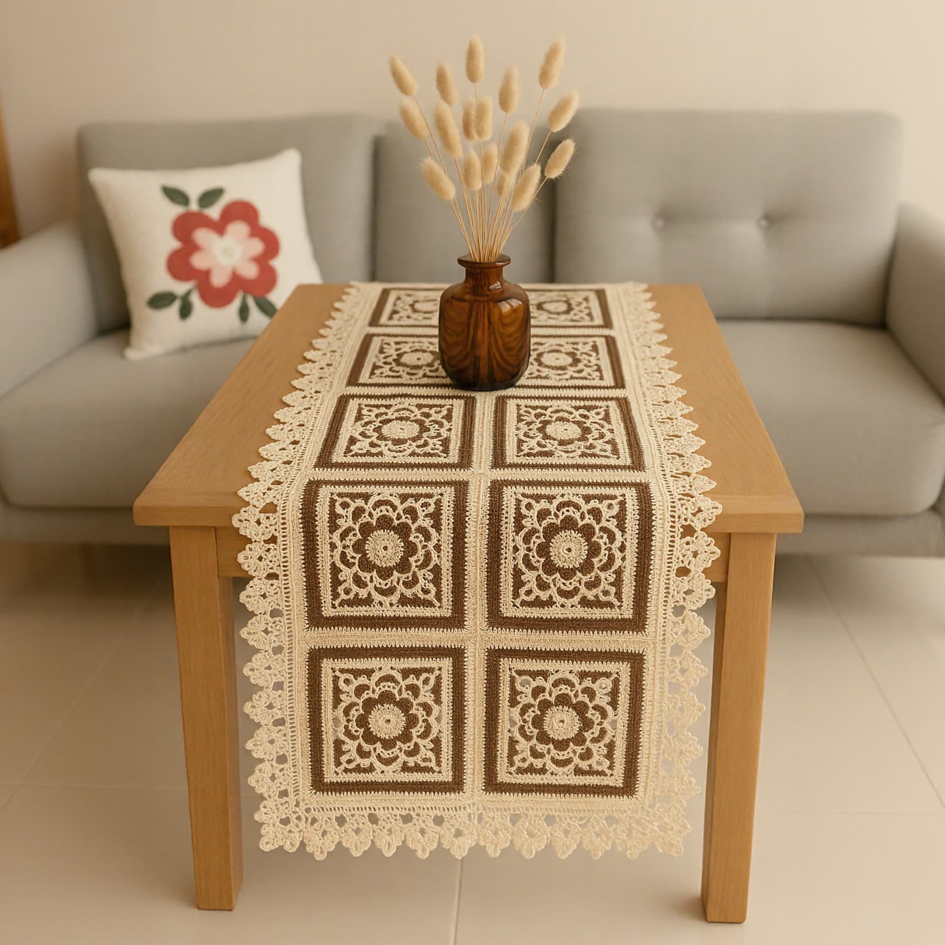 Liora El Örgüsü Dantelli Runner, zarafeti el emeğiyle buluşturur. Krem ve kahverengi tonlarının uyumuyla tasarlanan bu özel parça, masa dekorasyonuna sıcak ve sofistike bir dokunuş kazandırır. Geleneksel el işçiliğini modern çizgilerle harmanlayan Liora, oturma odasından yemek alanına kadar her yaşam alanında estetik bir duruş sergiler.