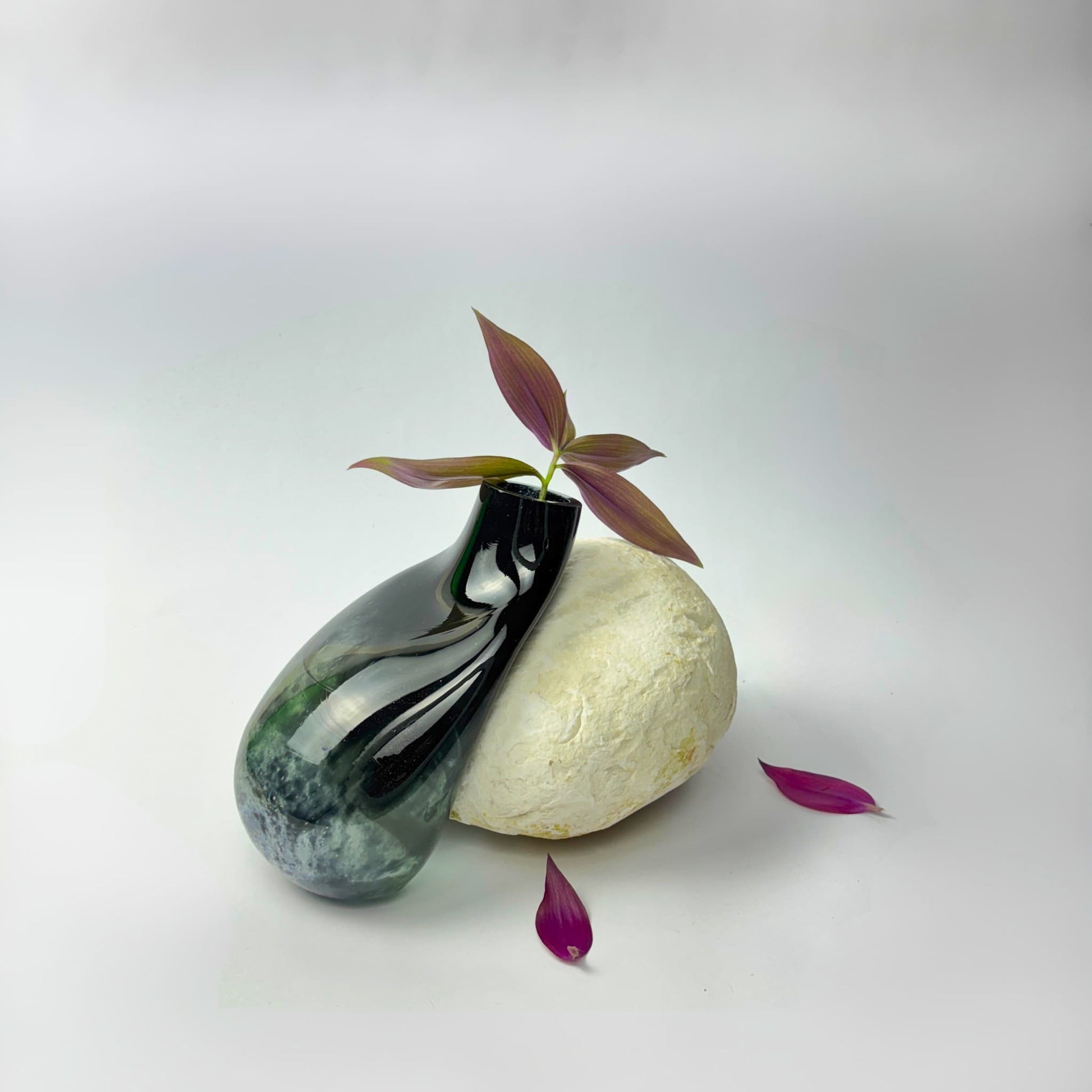 Yaşam alanlarında modern bir odak noktası yaratmak isteyenler için tasarlanan Noir No:2, içine konulan bitkiyle bütünleştiğinde canlılık kazanırken, boş bırakıldığında soyut bir sanat eseri kimliğine bürünür. Seri üretimden uzak, her biri doğaçlama bir sürecin ürünü olan bu tasarımda, siyah camın taşa neresinden değeceği ve nasıl bir kıvrım alacağı tamamen o anki ısıya ve ustanın nefesine bağlıdır.